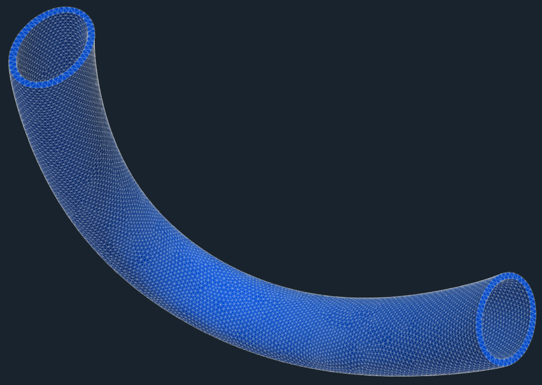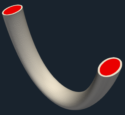 In general, there are multiple ways how the pipe model can be created. The CAD model of the pipe can be generally created in any CAD software manually or in an automated way via parametric model. The particular surface model of this pipe was created in Salome preprocessing platform. Let’s consider the following pipe geometry: