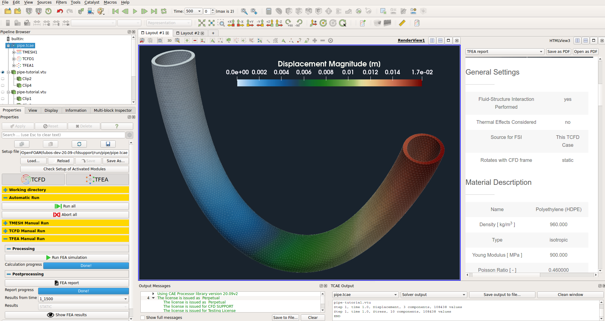 - It has been shown how to make a comprehensive CFD & FEA analysis including FSI of the pipe flow in a single automated workflow.