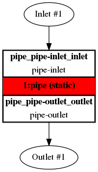 Any project simulated in TCFD has its component graph. The component graph shows how the components are organized – the model topology. What is the inlet, the outlet and how the components are connected via interfaces. A simple scheme of the component graph is shown below.