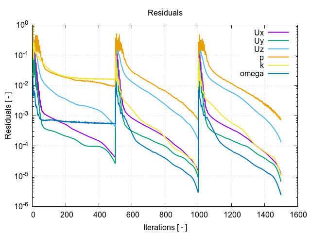 - Turbulence model: k-omega SST