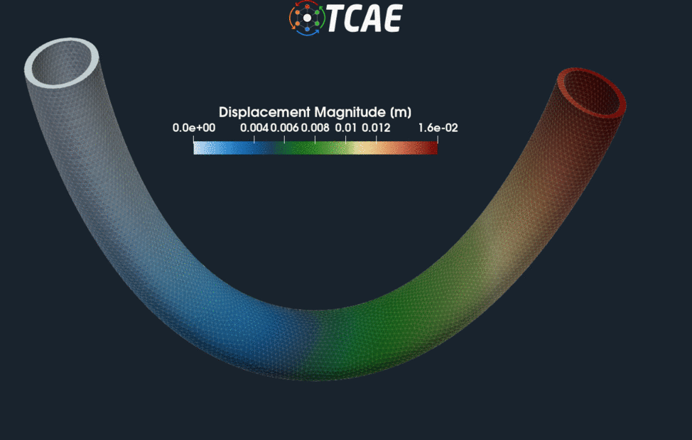 This study shows a pipe flow CFD & FEA analysis, including FSI. The simulation software used for this analysis is TCAE – a comprehensive simulation environment based on open-source. This particular pipe tutorial is completely artificial, and it is used mostly for the training purposes because it is reasonably quick. The goal of this study is to show how to work within TCAE environment.