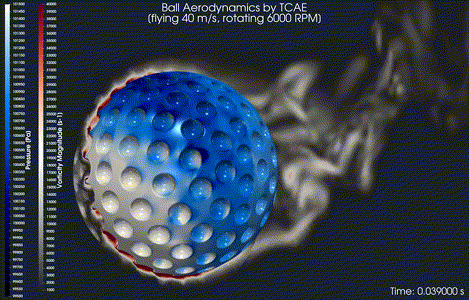 The ball rotates at 6000 RPM and flies through the air at 40 m/s, while advanced κ-ω-DES turbulence modeling and resolved wall treatment ensure high-fidelity results. The simulation features a compressible Newtonian fluid model, capturing the real physics of air behavior at speed and under rotation.
