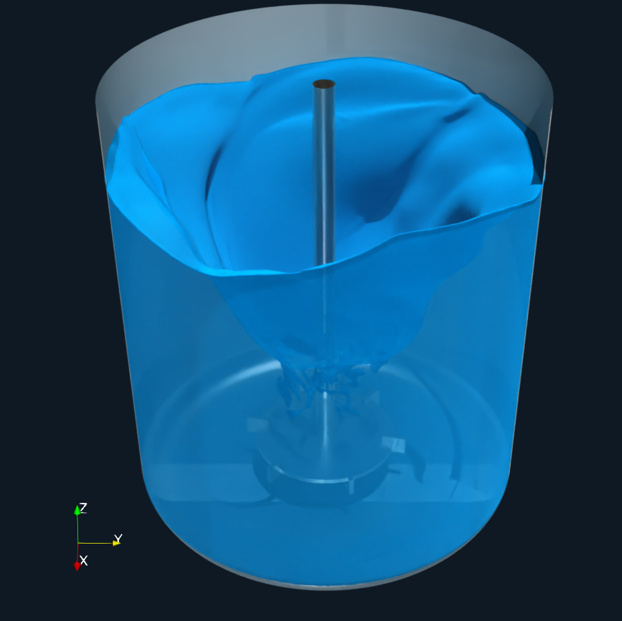 The Rushton impeller is a classic radial-flow mixer widely used in chemical and process engineering. Despite its simple geometry, it produces highly complex, unsteady flow structures—especially when multiphase effects are involved.