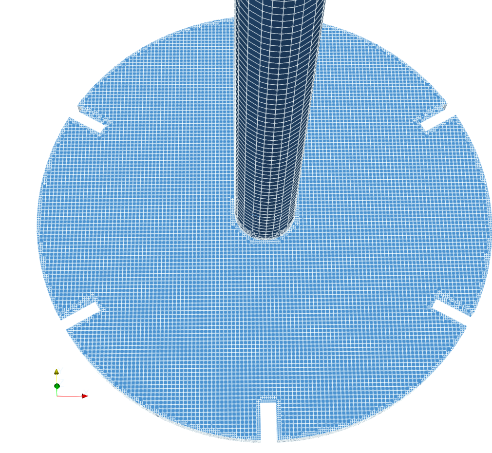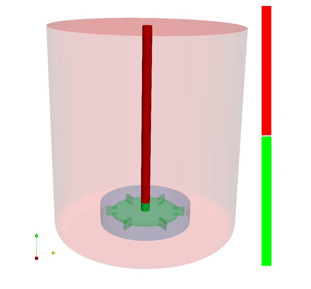 • Component 2 represents the Rushton impeller and includes the shaft,  the horizontal disc, and six equally spaced vertical blades.