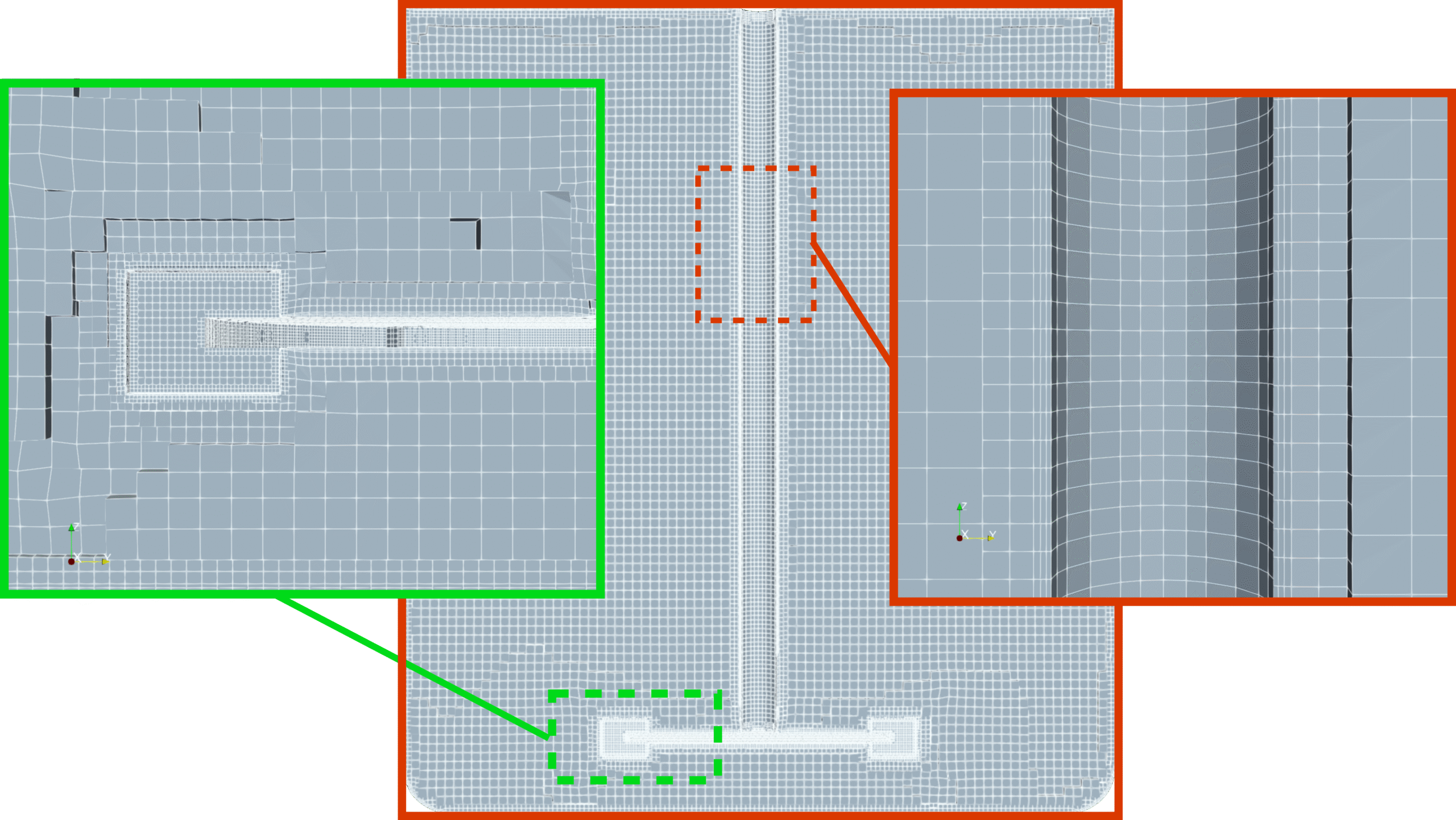 For each component, the computational mesh can be either generated in automated software module TMESH, using the snappyHexMesh open-source mesh generation utility or imported from an external source. Both approaches can be combined within the same simulation setup, allowing maximum freedom in how the mesh is constructed.