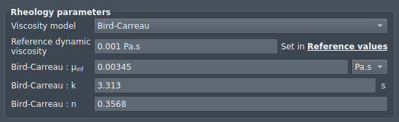 In the context of blood flow modelling, the determination of appropriate model parameters is not straightforward. In practice, rheological parameters are typically obtained from dedicated experiments and subsequently calibrated based on measured flow behaviour. As such, parameter selection may vary depending on the experimental dataset and operating conditions considered.